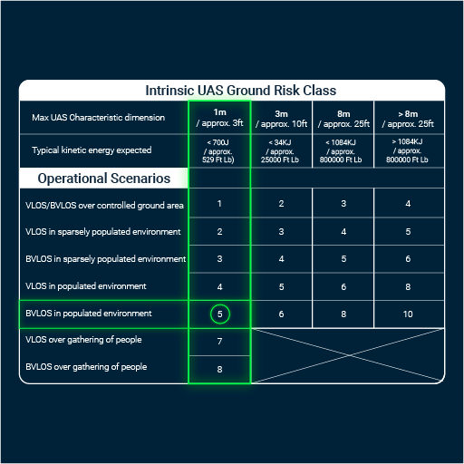 3. The intersection of the column and row will give you your Ground Risk Class value.