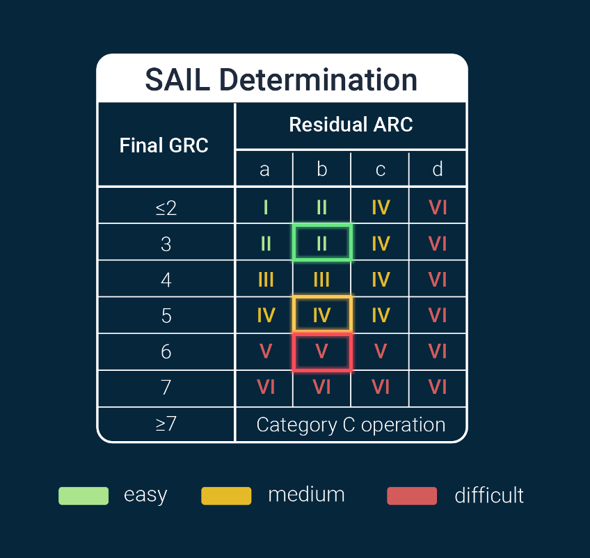 Next, you’ll determine the SAIL level of your operation based on the Ground Risk Class (GRC) and the Air Risk Class (ARC).