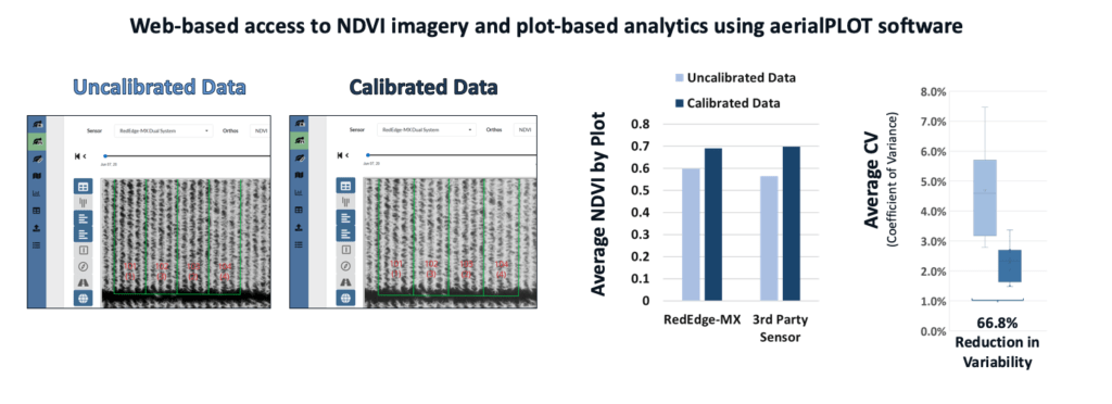 aerialPLOT has conducted several experiments looking at the impact of calibration on plot-based imagery used to measure crop health. Consistently, the radiometrically calibrated data was producing tighther, more accurate results compared to uncalibrated data.