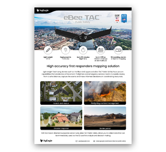 Carried in a backpack, operated by one person, and deployed in 3 minutes, eBee TAC Public Safety is a photogrammetry drone that provides 2D, 3D and thermal aerial data over large areas.
